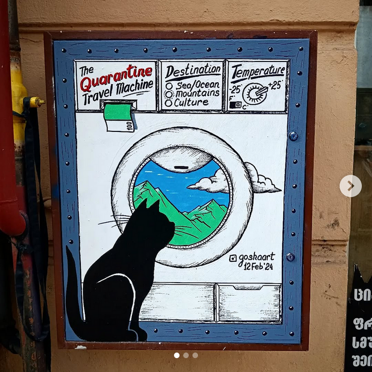 Dabei werden seine Werke selbst regelmäßig Opfer von Vandalismus, sei es aus antirussischen Motiven oder weil er sich auf Instagram zu provokant als der "wichtigste Maler in Tbilissi" bezeichnet hat. Tatsache ist, er schafft mit seinen Werken zauberhafte Oasen und lockt selbst bei den größten Street Art Muffeln ein anerkennendes Schmunzeln hervor.