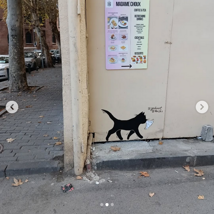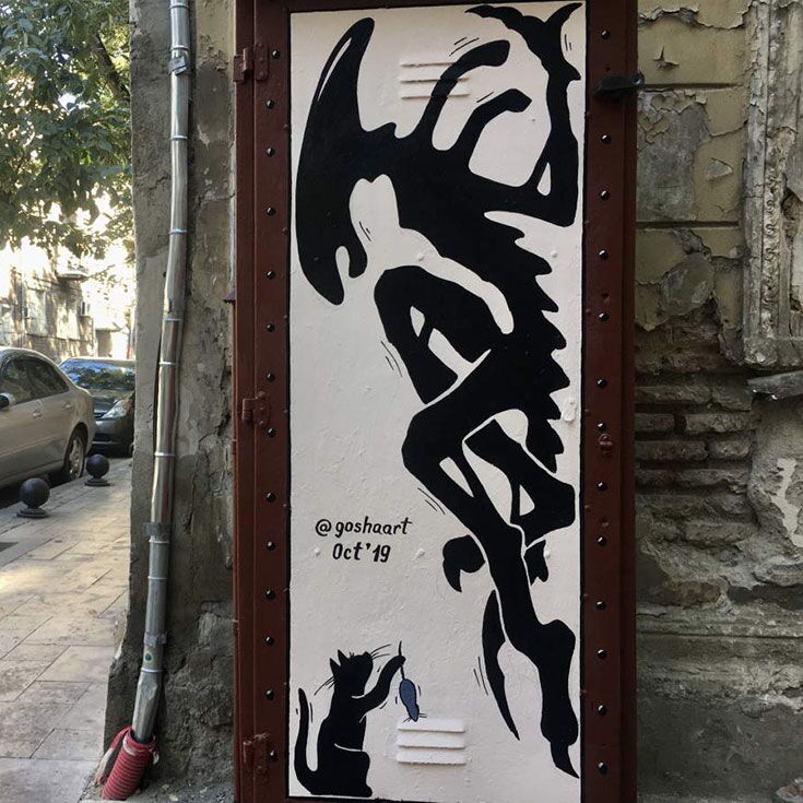 Die Katzen und Fabelwesen von Goshaart (Gosha Dimitruk) finden sich in der Tbilisser Altstadt in jeder Ecke. Es scheint, als hätten sie die Macht längst ergriffen und Gosha ist nur der Überbringer der Botschaft.