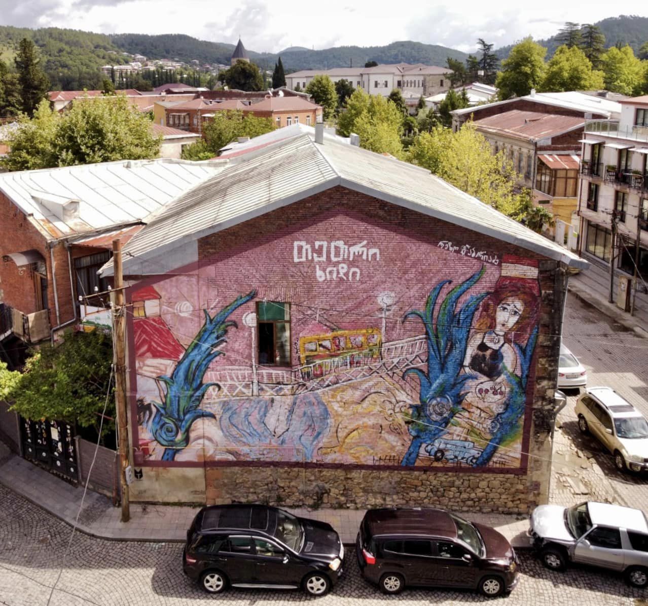One of the hardest, emotional and greatest things I ever done, is recreating a painting of a talented Rezo Gabriadze on the wall. I was rased on his films, theater and stories and it was incredible feeling to work with his painting.