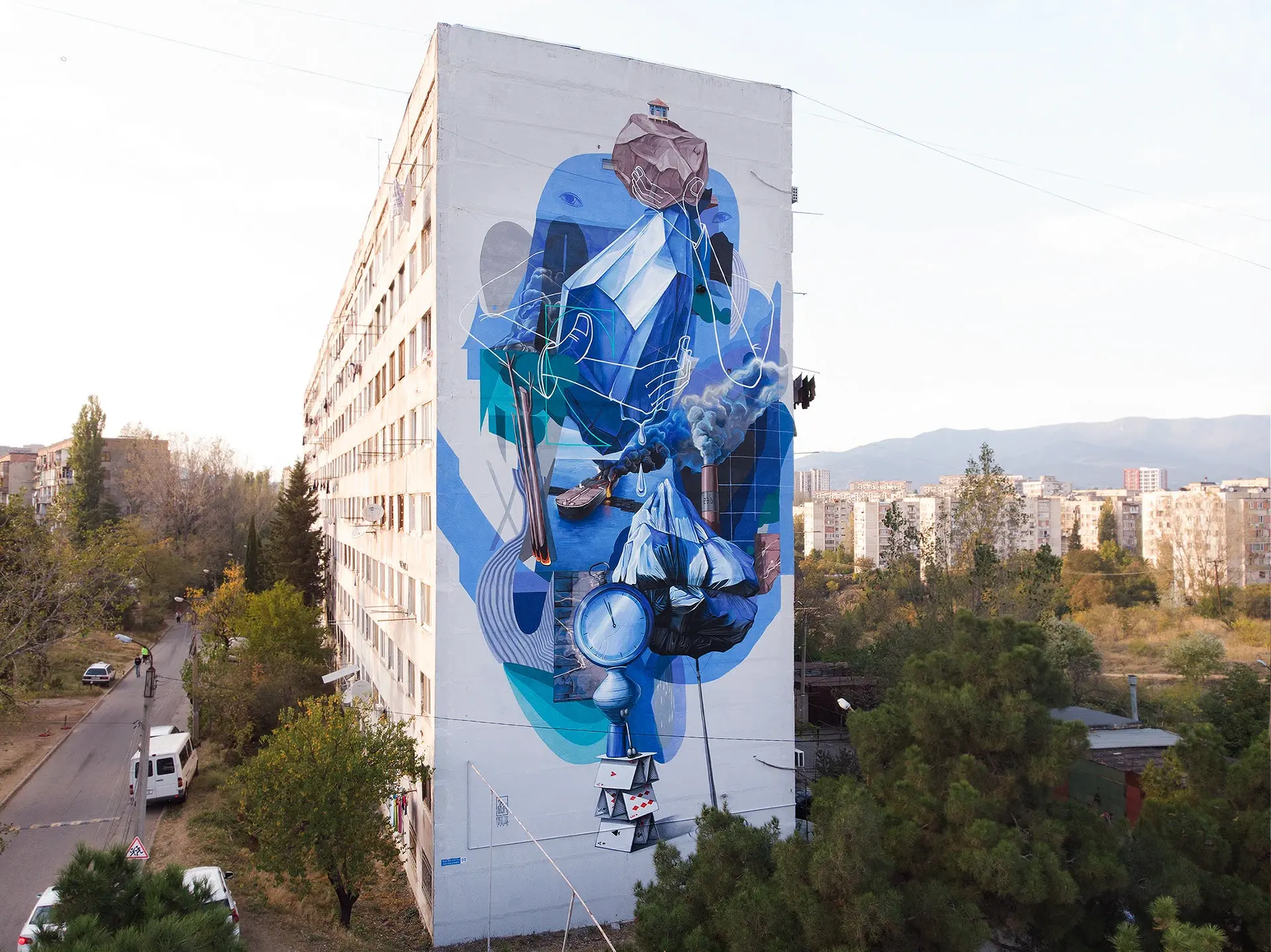 We have created a composition that consists of various elements of environmental pollution and natural disasters. We built it in such a way as to stand on the shaky card house. The Mural portrays our planet as one holistic organism. We intended to emphasize the fragility and importance of the situation. Here one change affects another and our whole existence depends on it.
