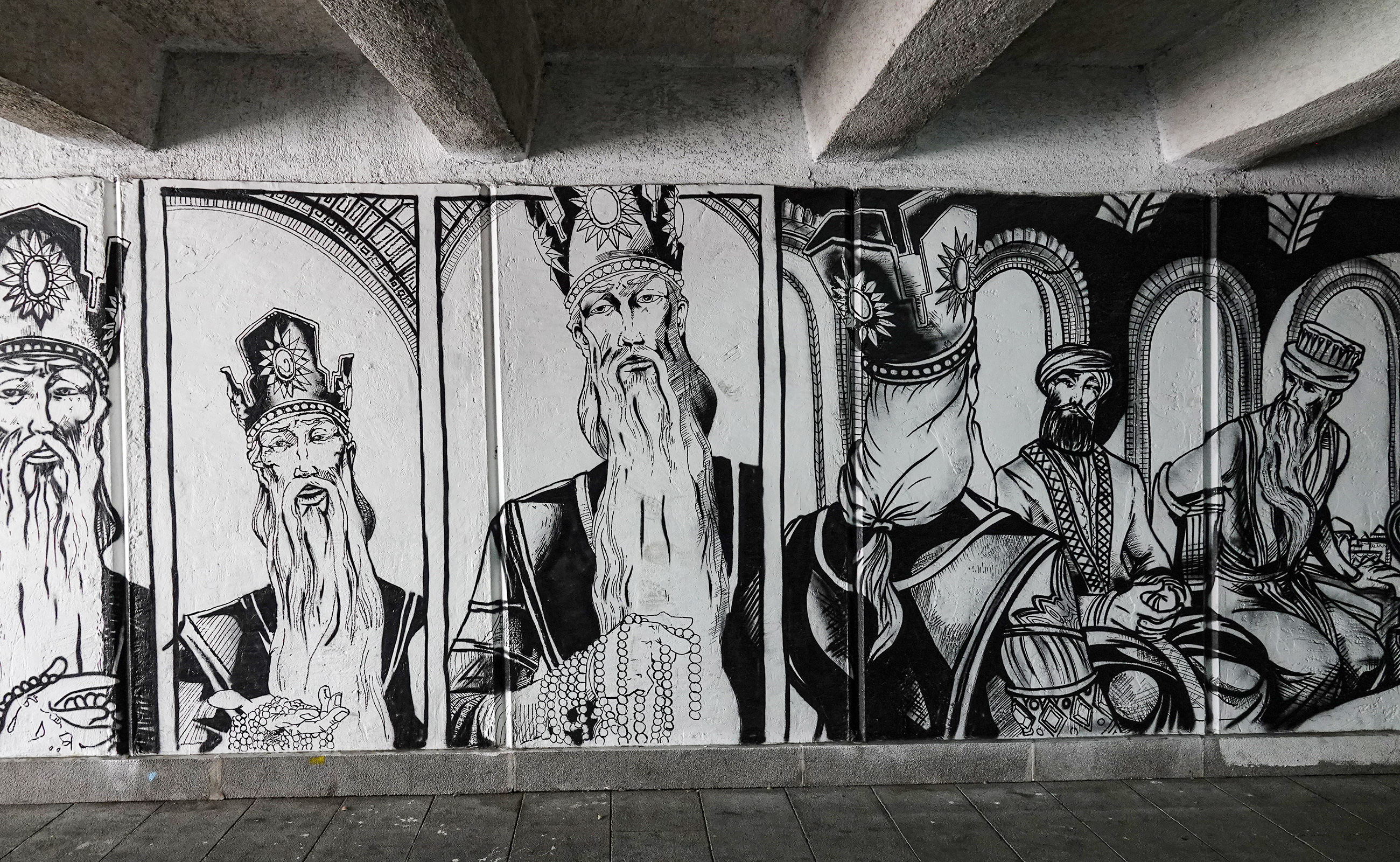 Collaboration verschiedener Graffiti Künstler (Wise, Disko u.a.) in der Unterführung der Baratashvili Brücke.