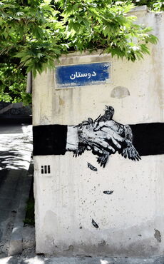 ILL is a street artist from Iran. His pointed paintings are mostly dealing with the political situation in Iran with subjects such as censorship, human rights and lack of freedom of speech. Or focussing the imbalance of globalized society with his figurative stencil art.
