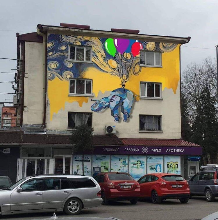 Rostom (Rosto) Zarandia ist ein georgischer Künstler und Aktivist aus Zugdidi. Er gestaltet farbenfrohe Murals wie "Elephant in the Air" oder bemalt öffentliche Mülltonnen kinderfreundlich als Marienkäfer, Spongebob oder Minions. Gleichzeitig ist er für seine politischen Protest-Graffitis bekannt: „Nino(ts)minda“ als Protest gegen das unzureichende Vorgehen im Fall des Kindermissbrauchs in Ninotsminda, „Gazhona Masts“ als Kritik am fehlenden Widerstand der Lehrer und Kulturbeauftragten gegen die Regierung und "Freedom" als Protest gegen die Inhaftierung der Journalistin Mzia Amaghlobeli.