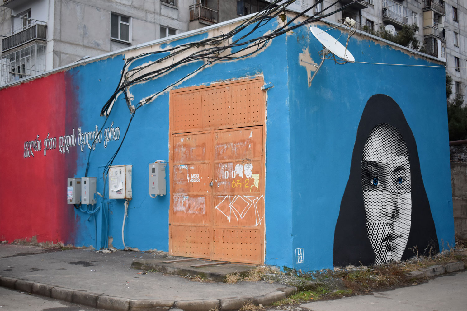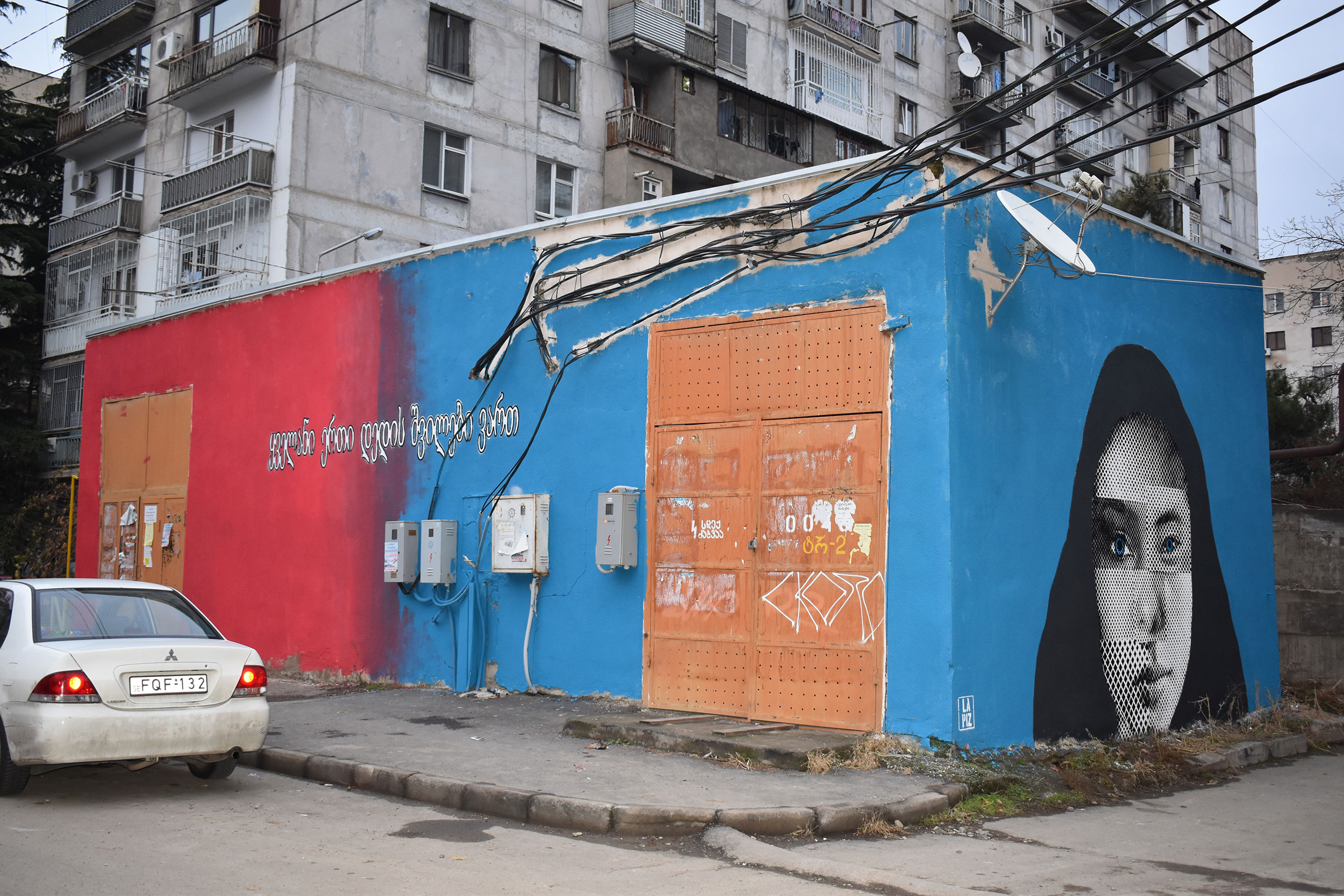 Das Mural "We Are All Children of One Mother" des deutschen Künstlers Lapiz ist inspiriert vom Buch „The Seven Daughters of Eve“ von Bryan Sykes und erinnert daran, dass alle Menschen gemeinsame Vorfahren teilen. Der georgische Schriftzug "ყველანი ერთი დედის შვილები ვართ" (dt. "Wir sind alle Kinder einer Mutter") stellt die Frage, warum Grenzen uns trennen sollen - wir sind zugleich gleich und einzigartig.