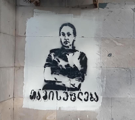 Die Journalistin, auf die sich Rosto Zarandias Graffiti "Free Mzia" bezieht, ist Mzia Amaghlobeli, eine prominente georgische Journalistin und Mitbegründerin der unabhängigen Medienplattformen Batumelebi und Netgazeti.