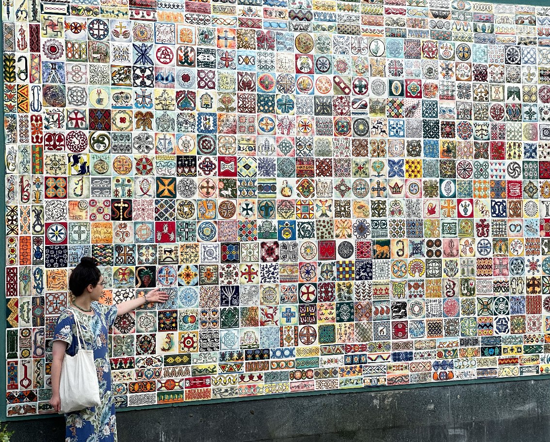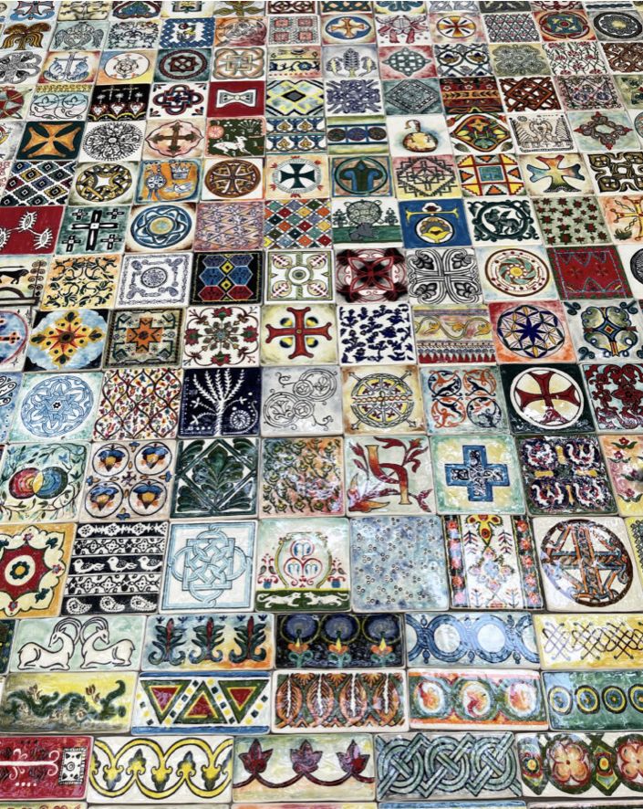 Die Idee zu einem solchen monumentalen Wandbild entstand als ich Skizzen für meine Keramikarbeiten auswählte. Ich beschäftigte mich gerade mit georgischen Motiven und unseren einzigartigen Ornamenten.