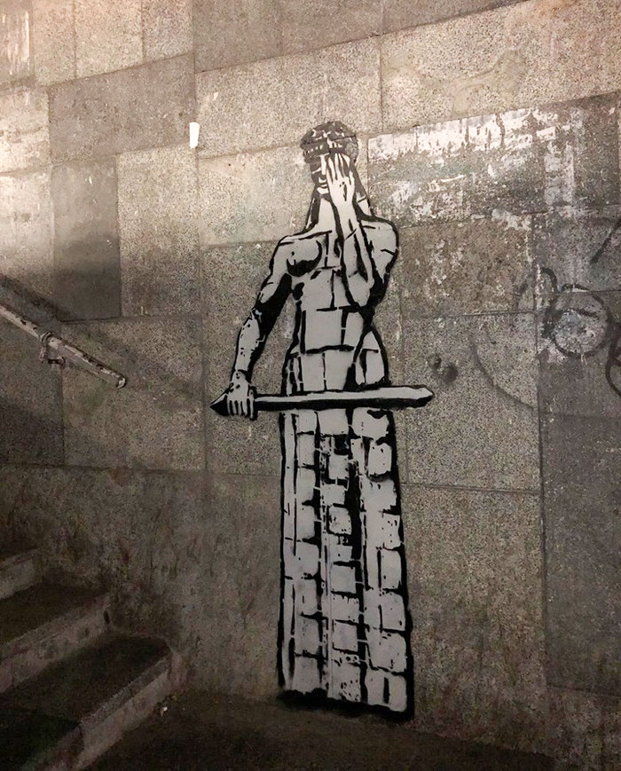 Das Mural von Gagosh entstand nach den sogenannten "Gavrilov’s Night" Protesten im Juni 2019, als zwei Demonstrierende durch Gummigeschosse ihr Augenlicht verloren. Es zeigt die Statue Kartlis Deda (Mutter Georgiens) wie sie ihr Auge verdeckt und bezeugt die Solidarität mit den Protestierenden.