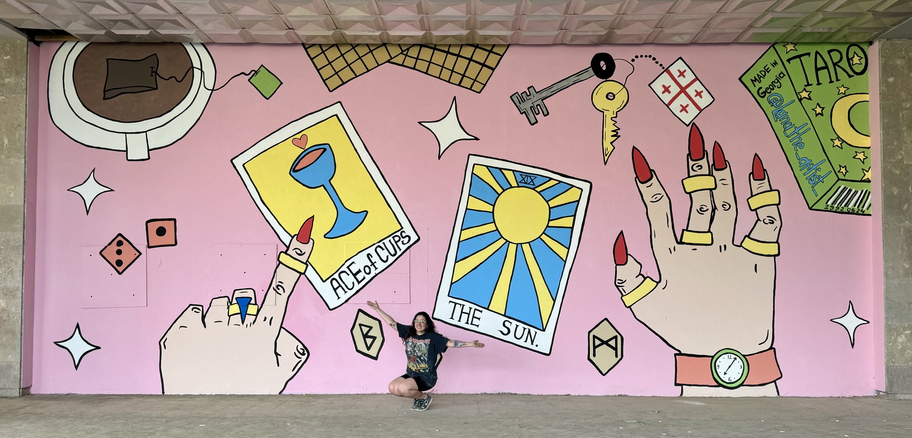 In meinen Entwurf habe ich ein wenig Magie und Mystik eingewoben: Runen, Tarotsymbole und kleine Zeichen … Für all jene, die vor dem Wandbild stehen bleiben oder auch nur flüchtig hinsehen, soll es ein kurzer Moment der Loslösung von der Realität sein - ein Raum für Gedanken, Vorahnungen und Träume.