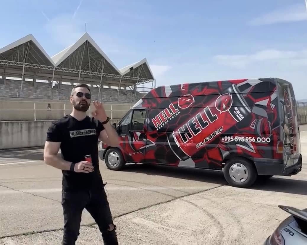 Gestaltung der Lieferwagen für Hell Energy Drink in Georgien.