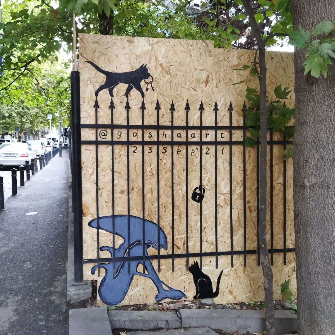 Little Alien was catched to fence, but two brave black cats will give a freedom to him!