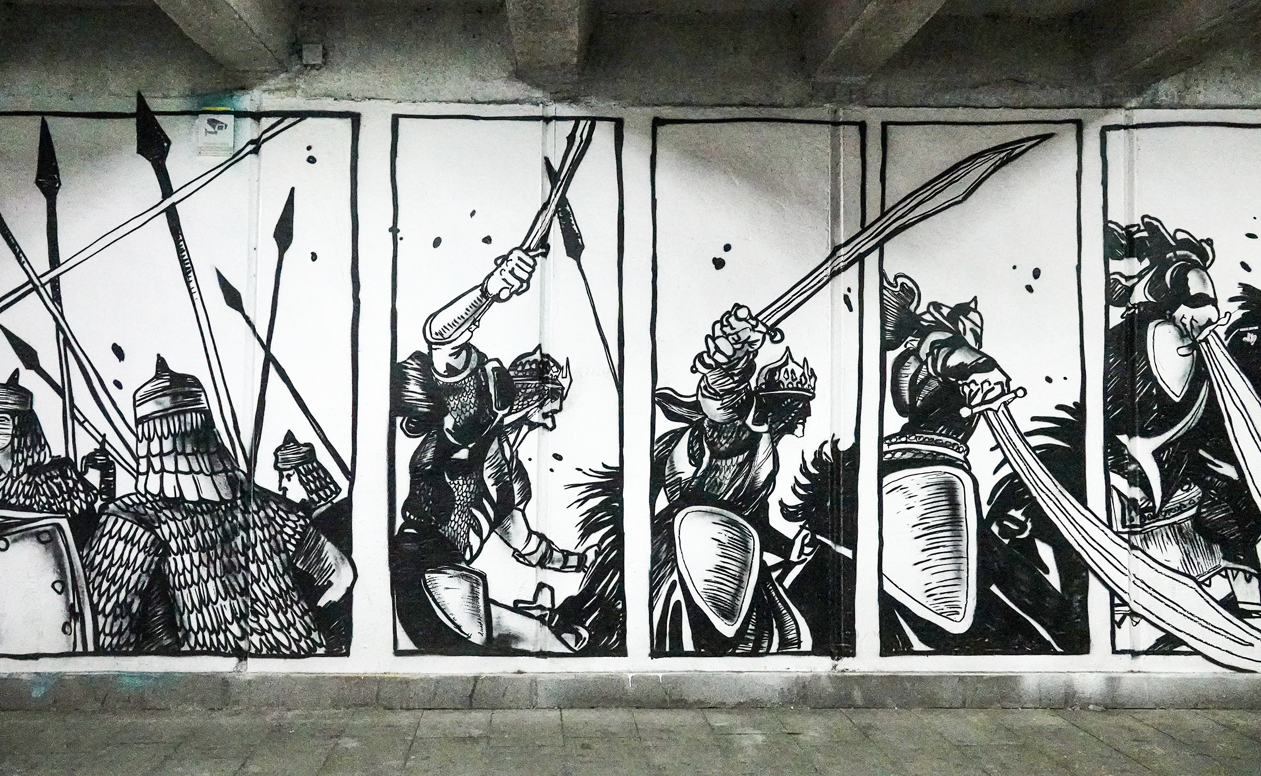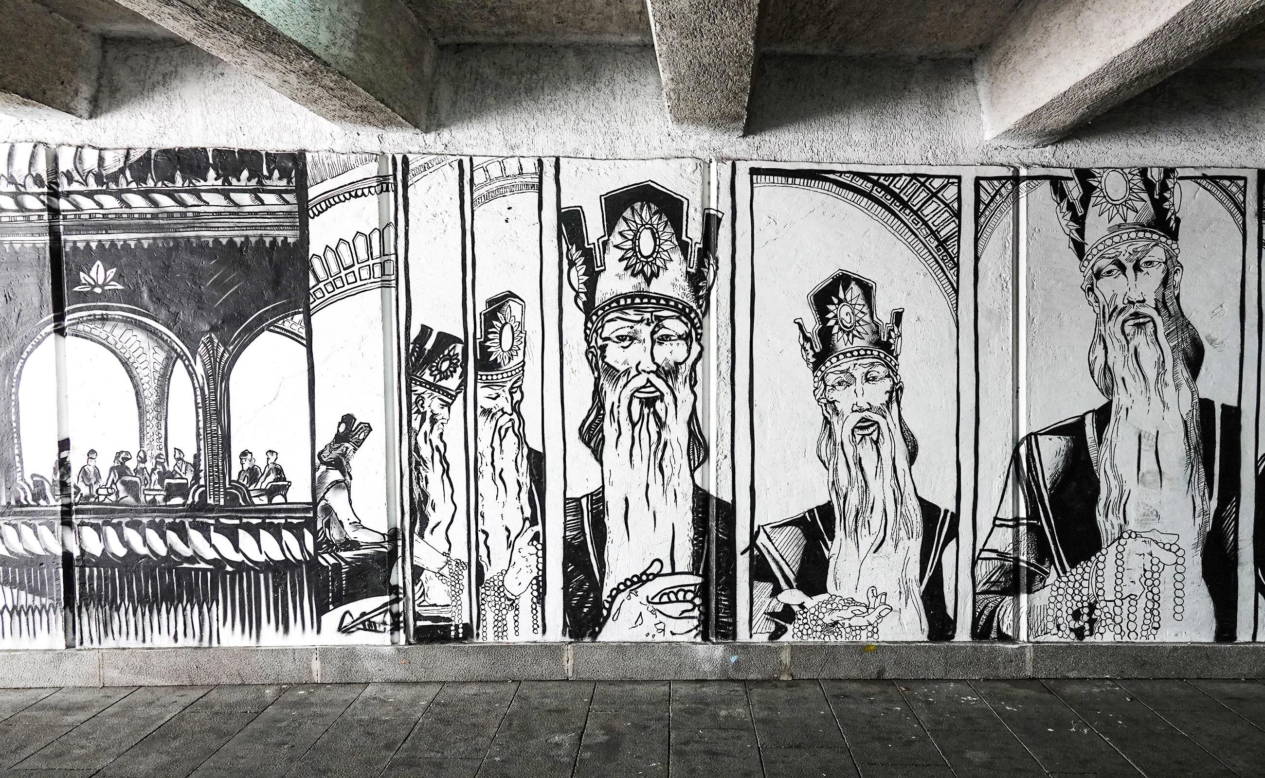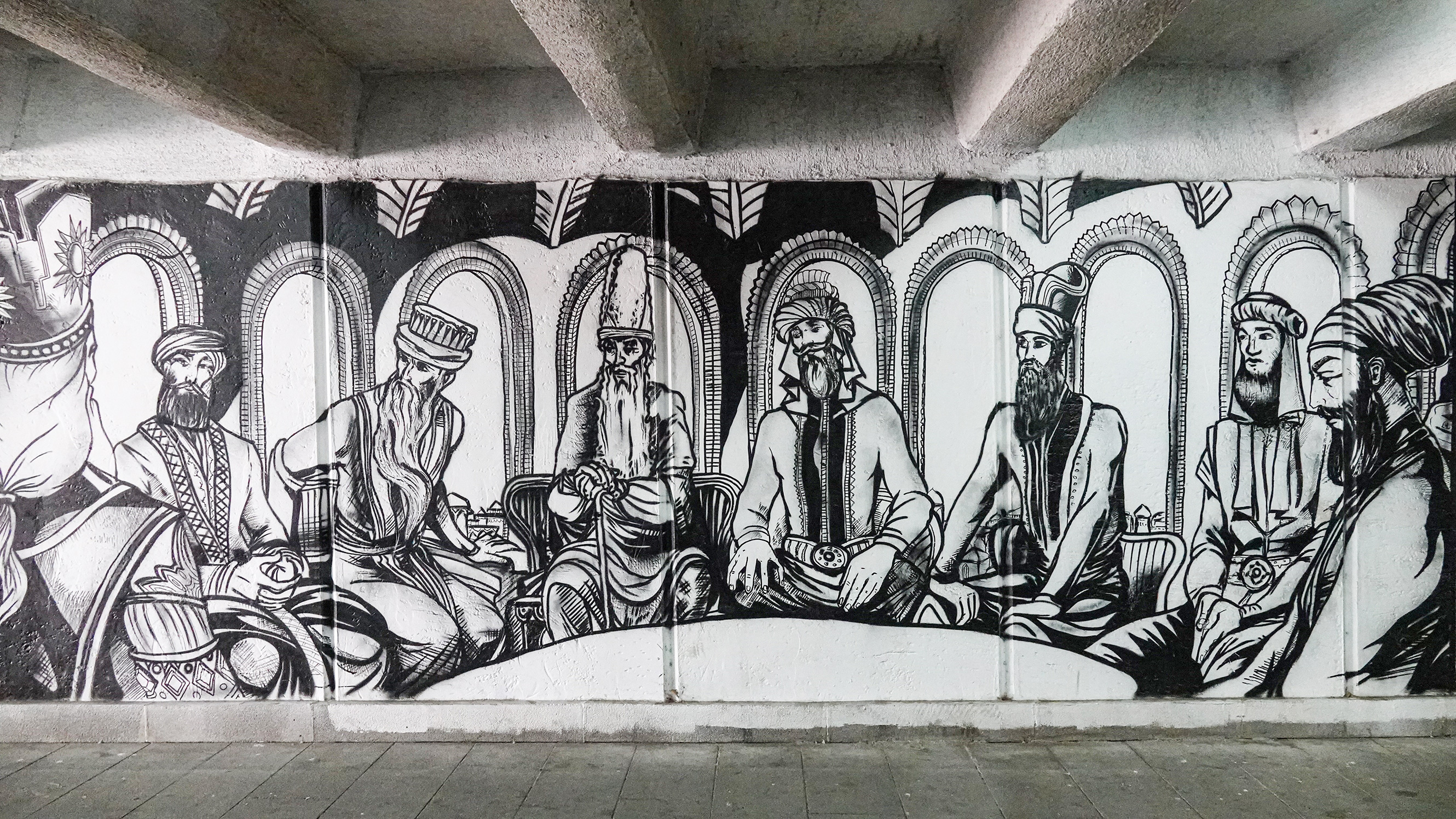 Collaboration verschiedener Graffiti Künstler (Wise, Disko u.a.) in der Unterführung der Baratashvili Brücke.