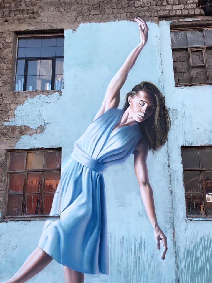 This mural supports the idea of finding a good balance in life. The young fragile girl reflects the human’s internal harmony together with the joy of existence. A bunch of chairs is a metaphor for the world’s chaos and the diversity of different moments we all go through - positive, tragic, happy and sad. They make us balance and find the harmony.